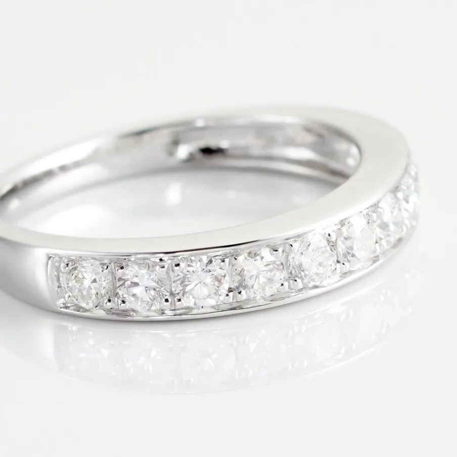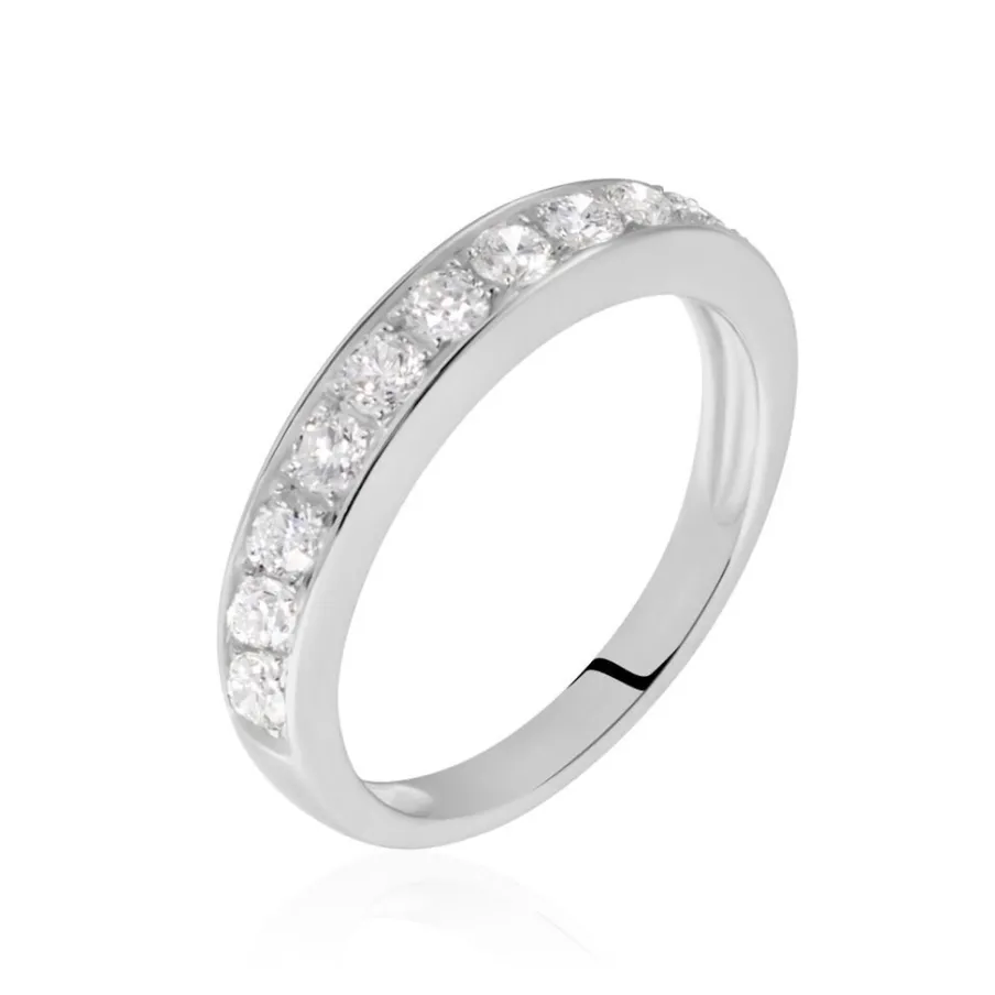 Demi-alliance Or Blanc 750/1000 Diamants Synthétique 0.70cts Sertis Grain