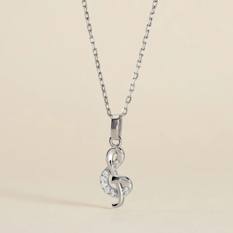 Pendentif Argent Blanc 925/1000 Cle De Sol Pavage Oxydes De Zirconium