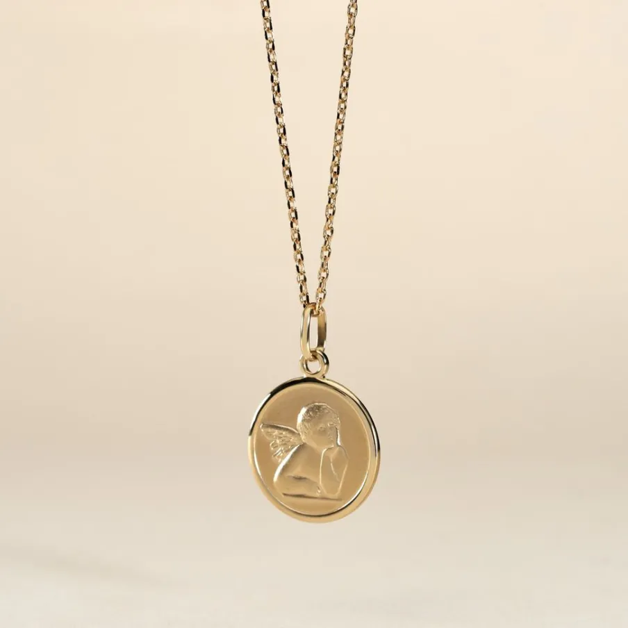 Pendentif Or Jaune 375/1000 Médaille Ronde Motif Ange Penseur Mat