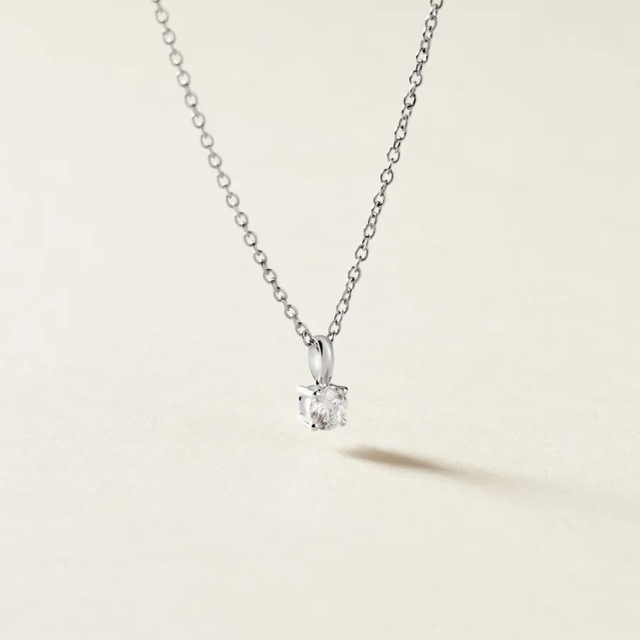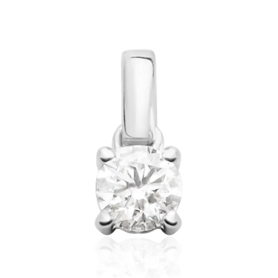 Pendentif Solitaire Or Blanc 375/1000 Diamant 0.20cts Serti 4 Griffes