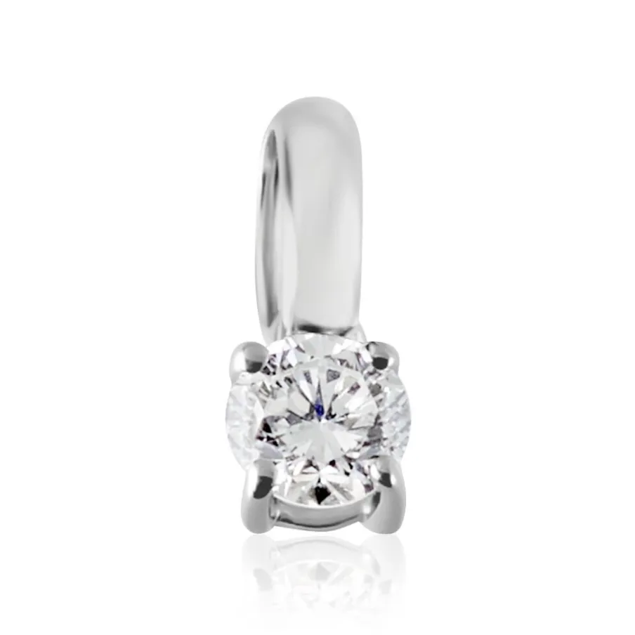 Pendentif Solitaire Or Blanc 375/1000 Diamant 0.10cts Serti 4 Griffes