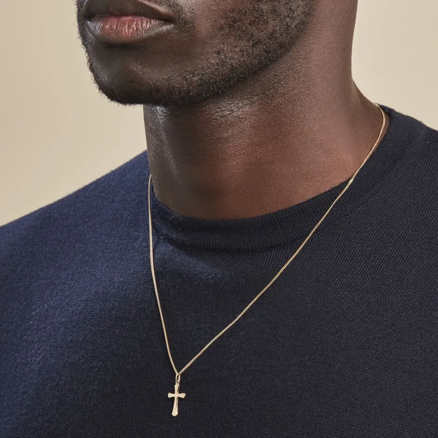 Pendentif Or Jaune 375/1000 Motif Croix Religieuse Striée