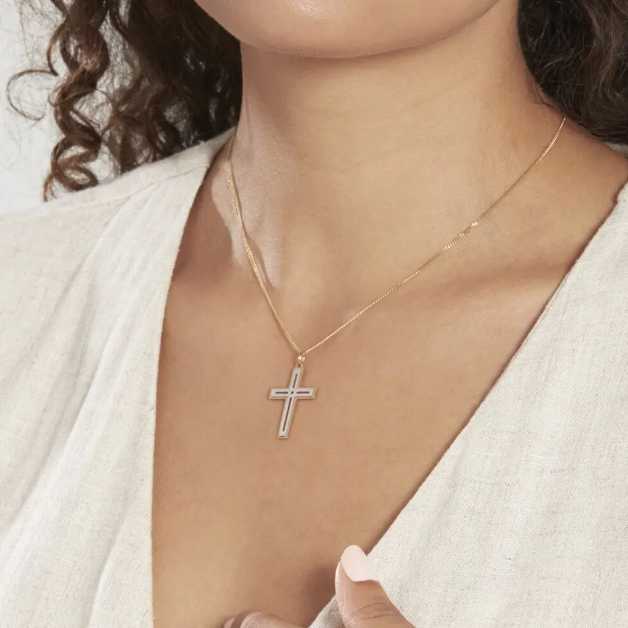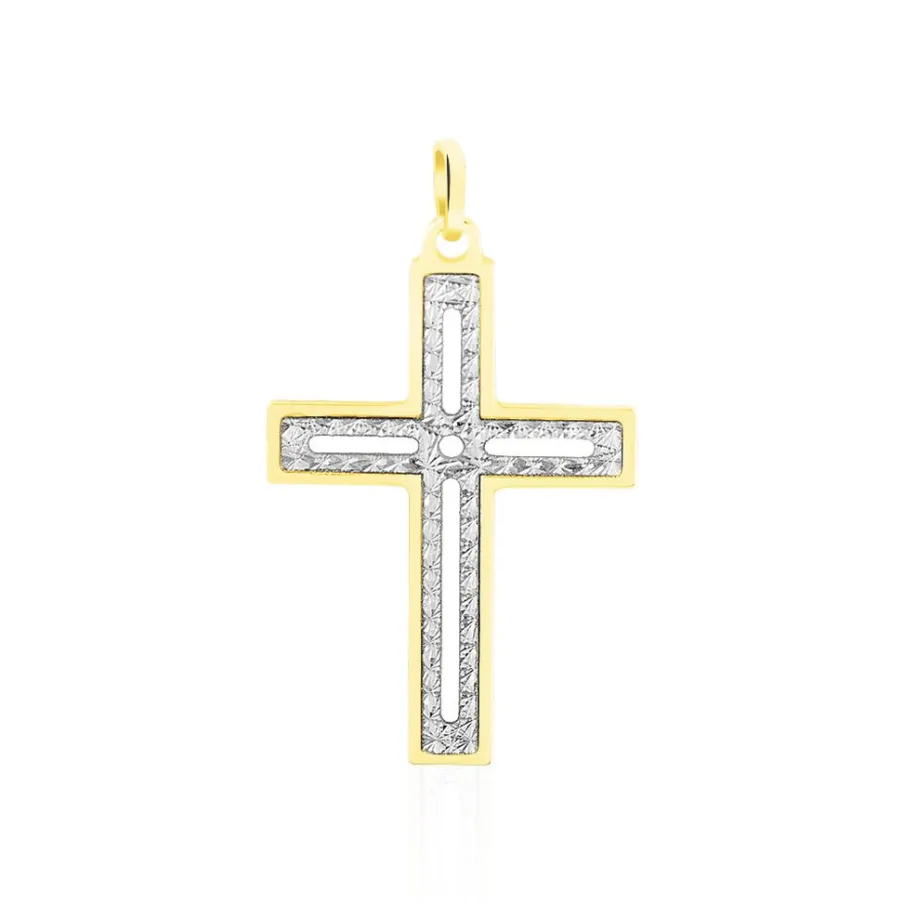 Pendentif Or Bicolore 375/1000 Motif Croix Diamantee