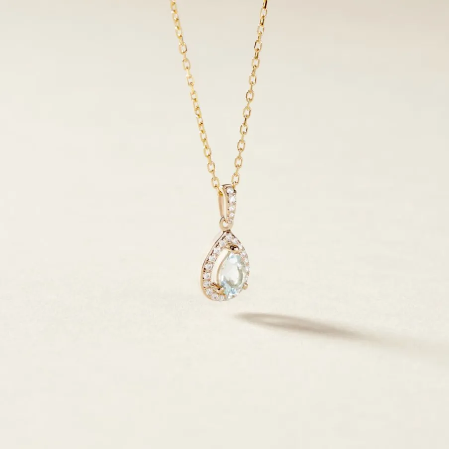 Pendentif Or Jaune 375/1000 Topaze Forme Poire Entourage Oxydes De Zirconium