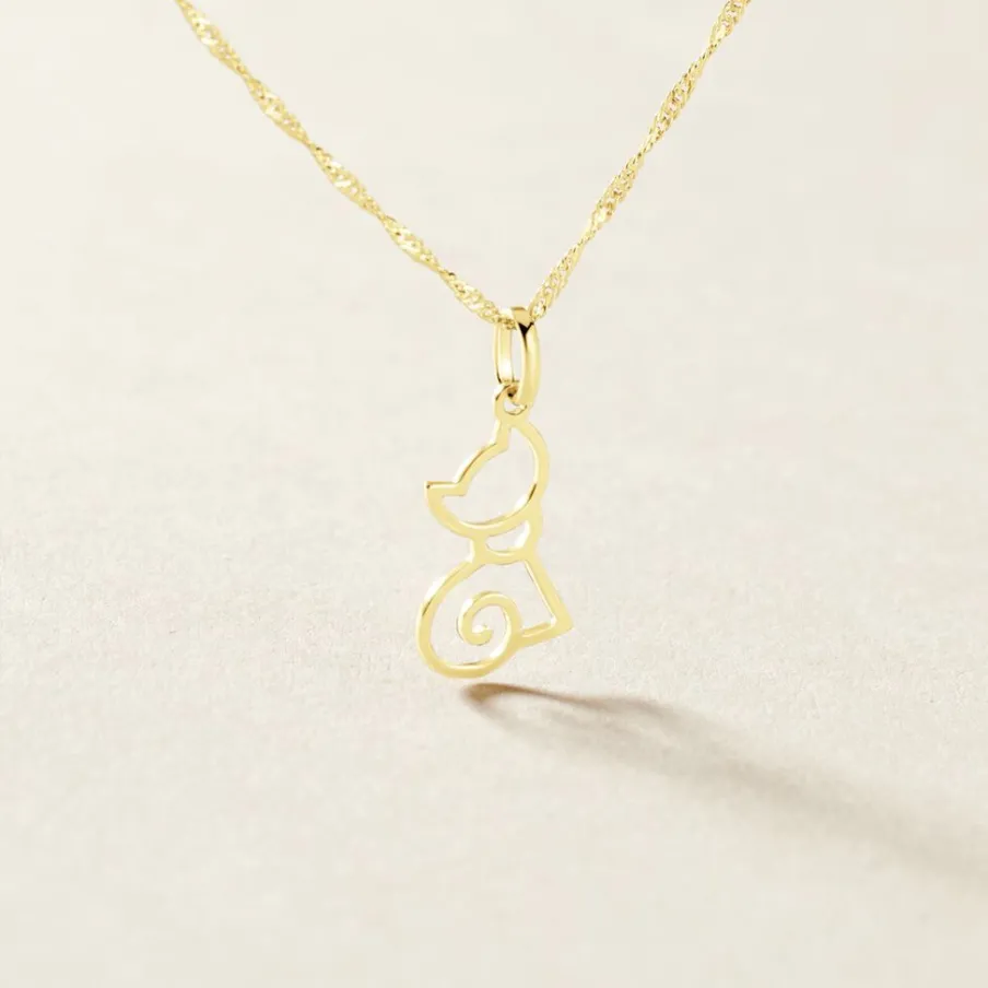 Pendentif Or Jaune 375/1000 Chat Ajoure