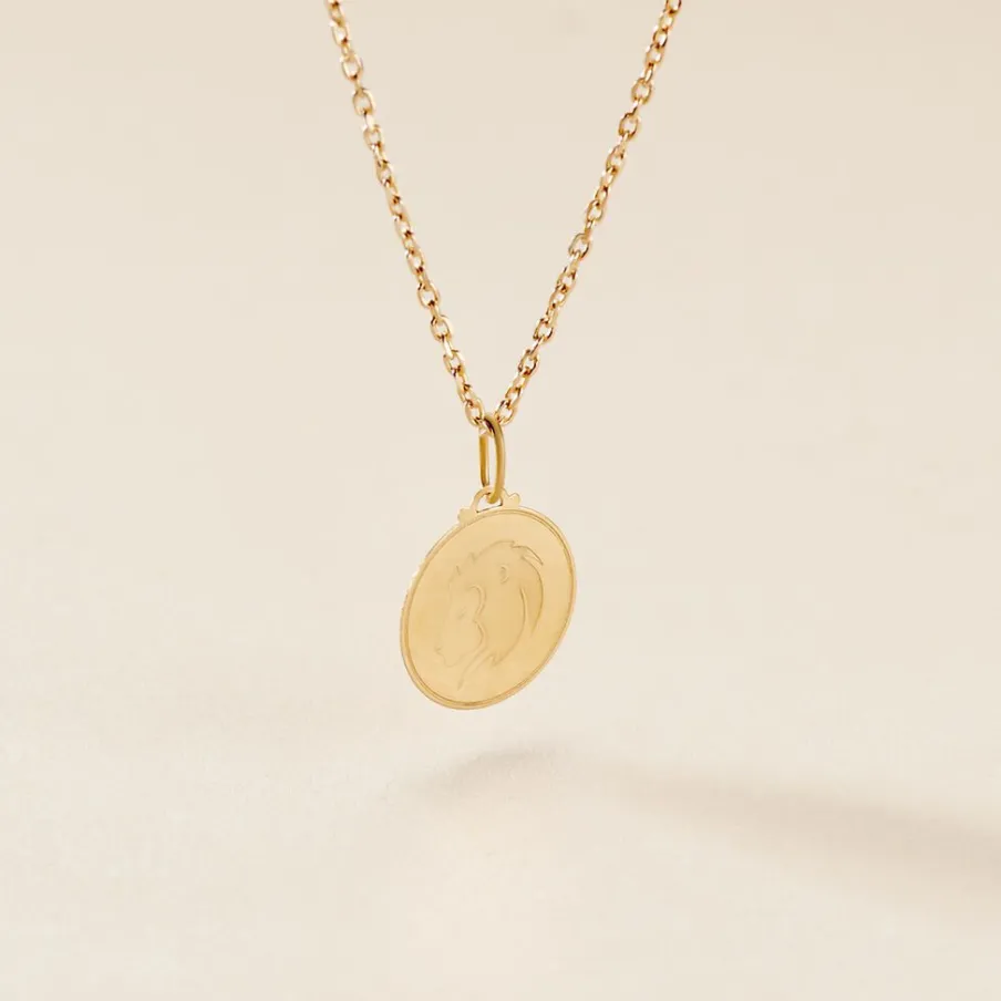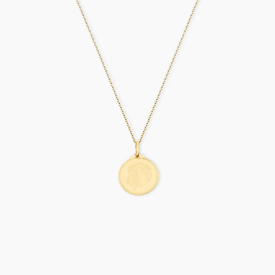 Pendentif Or Jaune 975/1000 Medaille Ronde Motif Lion