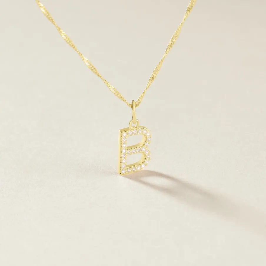 Pendentif Or Jaune 375/1000 Lettre B Oxydes De Zirconium