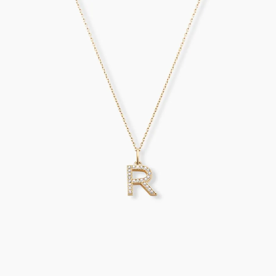 Pendentif Or Jaune 375/1000 Lettre R Oxydes De Zirconium