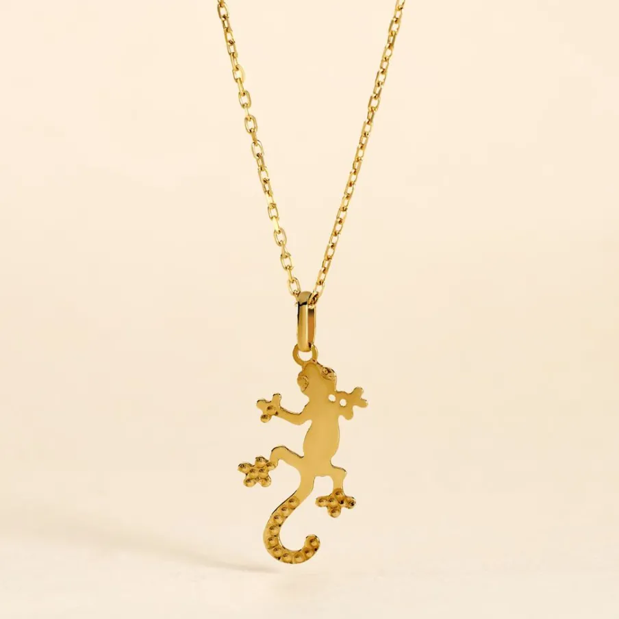 Pendentif Or Jaune 375/1000 Forme Salamandre Contour Diamante