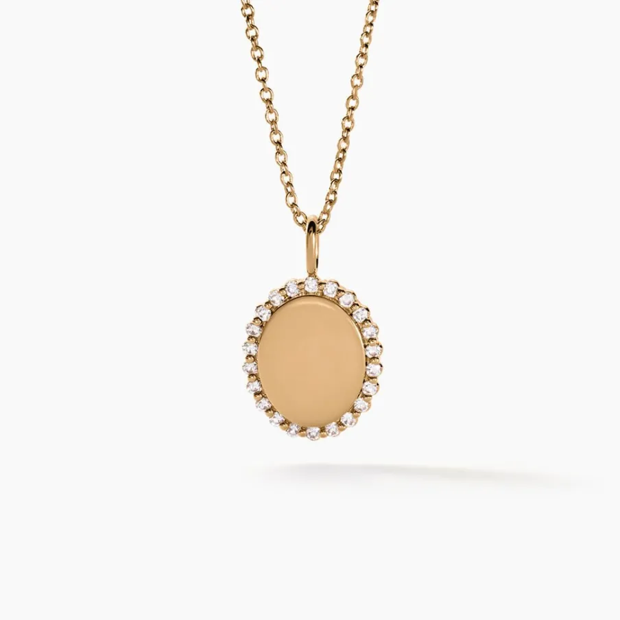Pendentif Plaqué Or Jaune 750/1000 Ovale Entourage Oxydes De Zirconium