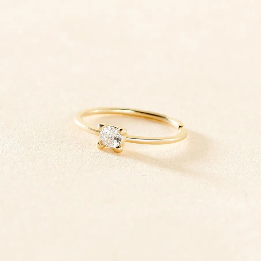 Piercing De Nez Or Jaune 375/1000 Anneau Avec 1 Oxyde De Zirconium Rond Serti Griffes Diametre 1cm