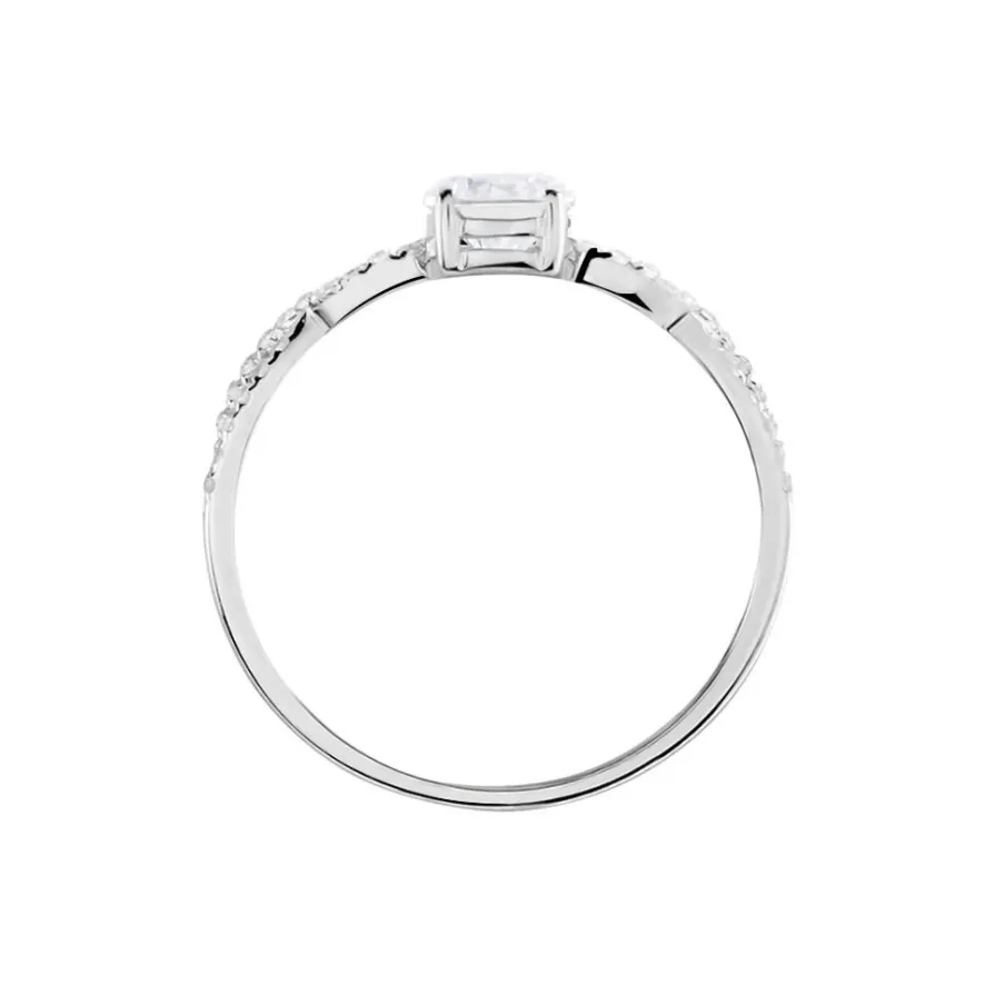 Solitaire Or Blanc 375/1000 Oxyde De Zirconium Accompagne Corps De Bague Entrelace