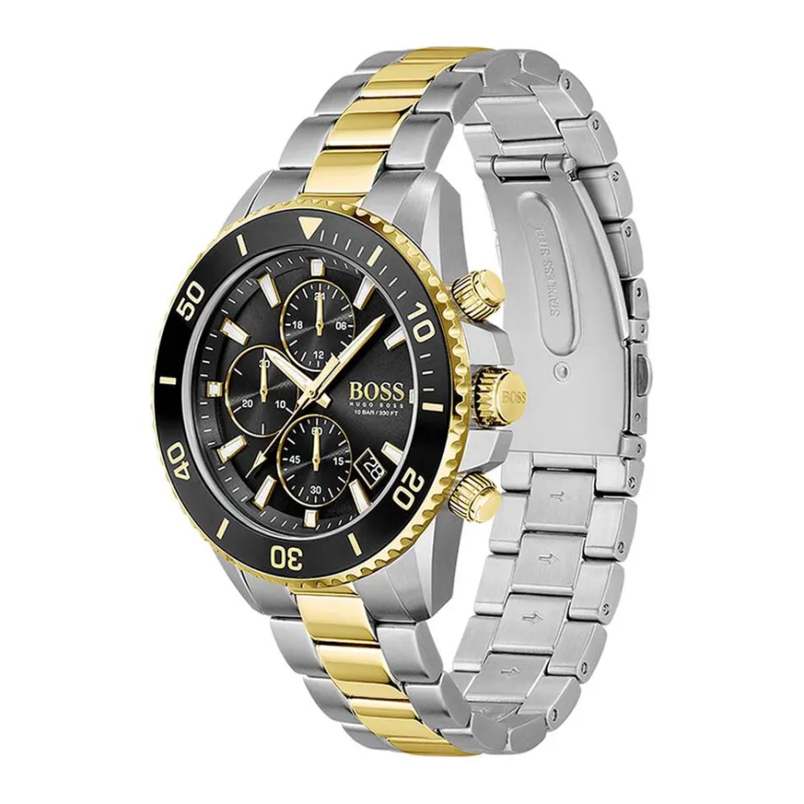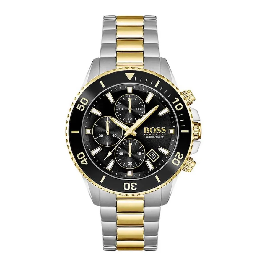Montre Boss Admiral Acier Argenté Ronde Quartz Chronographe 45mm Fond Noir Bracelet Acier Argenté Et Doré 1513908