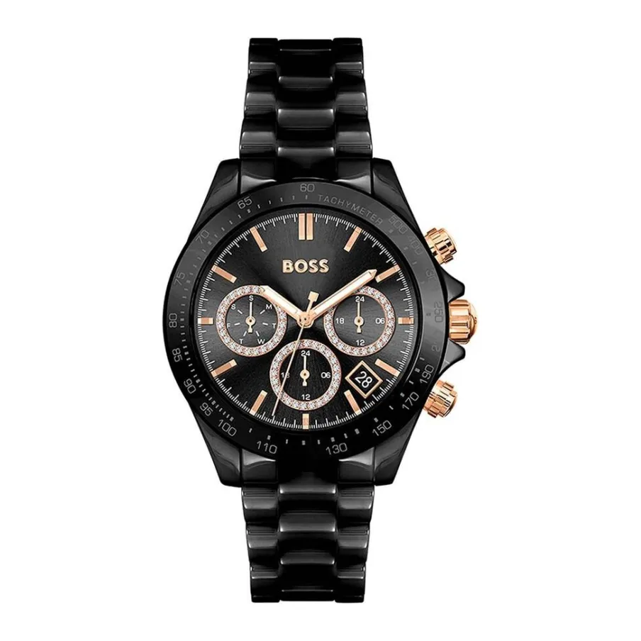 Montre Boss Novia Ceramic Ceramique Noir Ronde Quartz 38mm Fond Noir Bracelet Céramique Noir 1502633