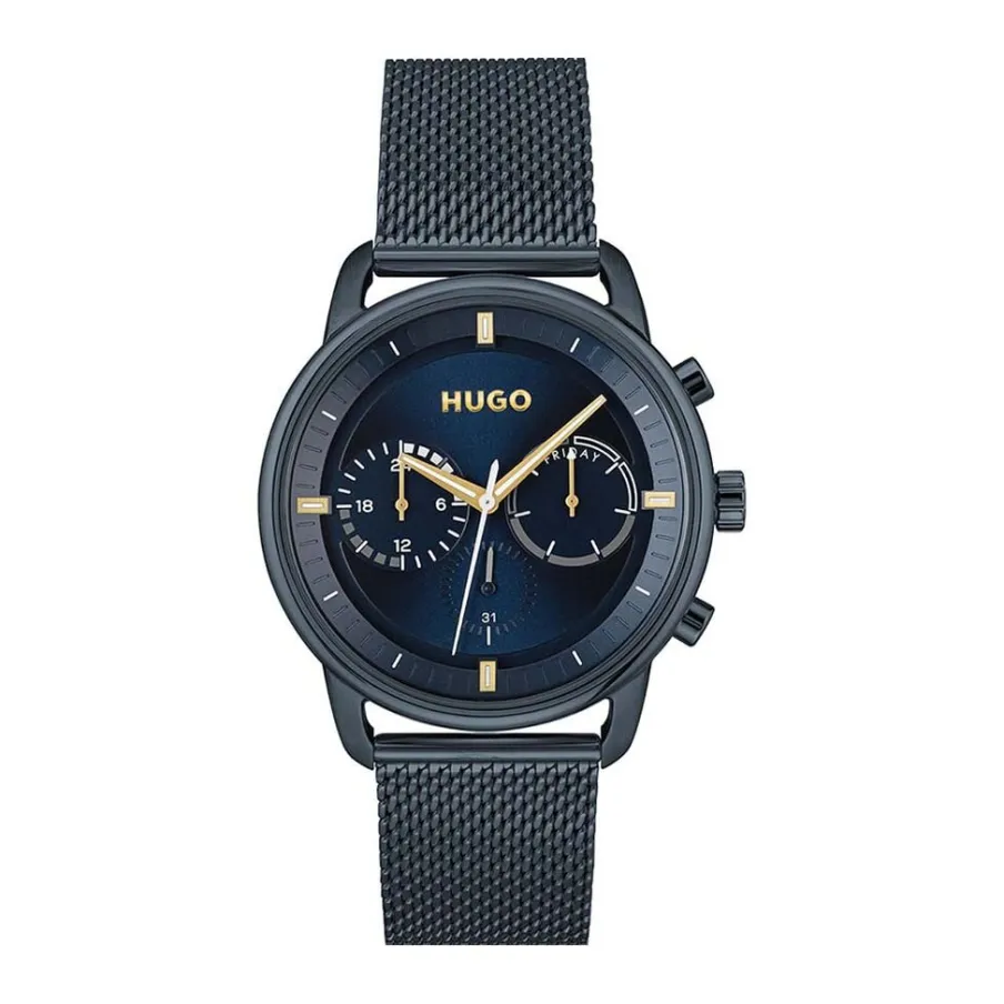 Montre Hugo Advise Acier Bleu Ronde Quartz Multifonctions 44mm Fond Bleu Bracelet Maille Milanaise Acier Bleu 1530237