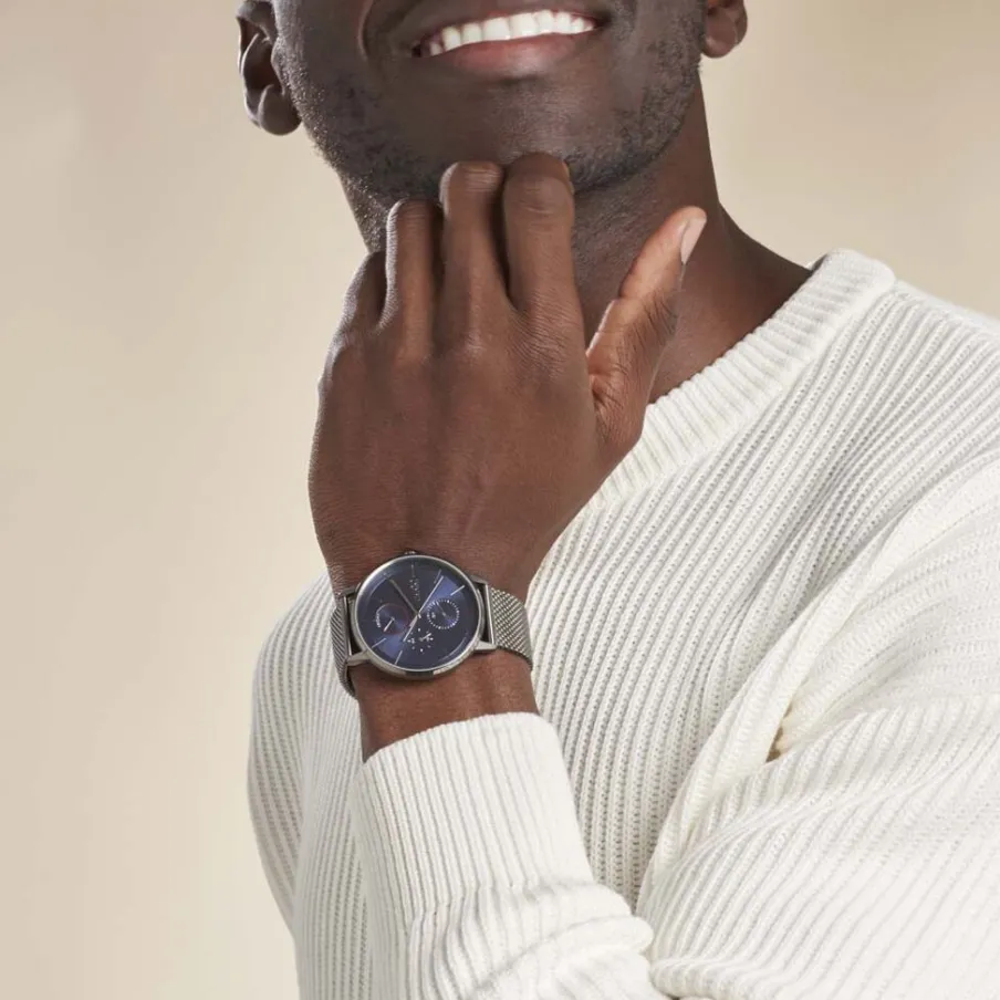 Montre Hugo Exist Acier Gris Ronde Quartz 43mm Fond Bleu Bracelet Acier Gris 1530171