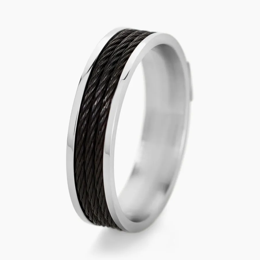 Bague Homme Acier Et Cables Noirs