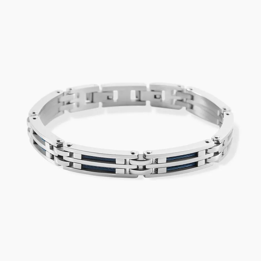 Bracelet Jourdan Priam Acier Argente Cable Bleu 21.5cm Jh110024b