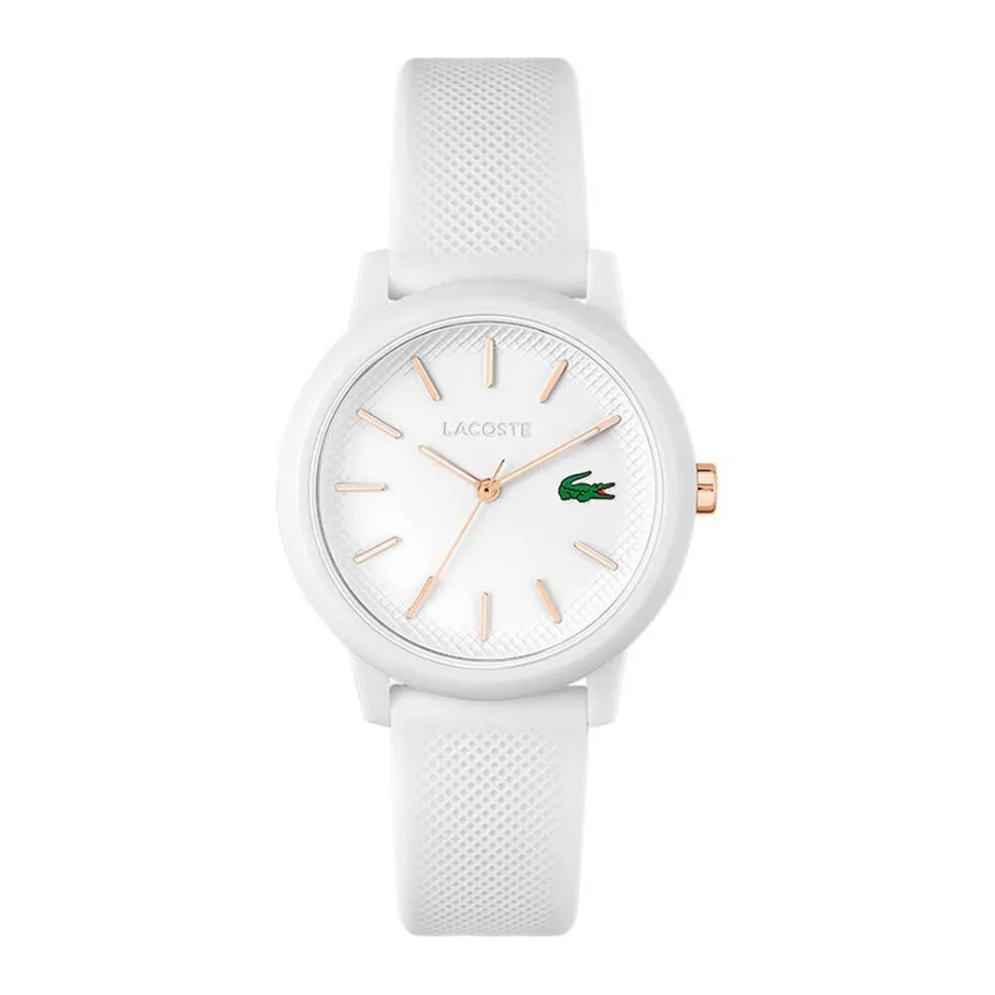 Montre Lacoste 12.12 Silicone Blanc Ronde Quartz 36mm Fond Blanc Bracelet Silicone Blanc 2001211