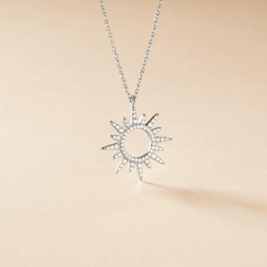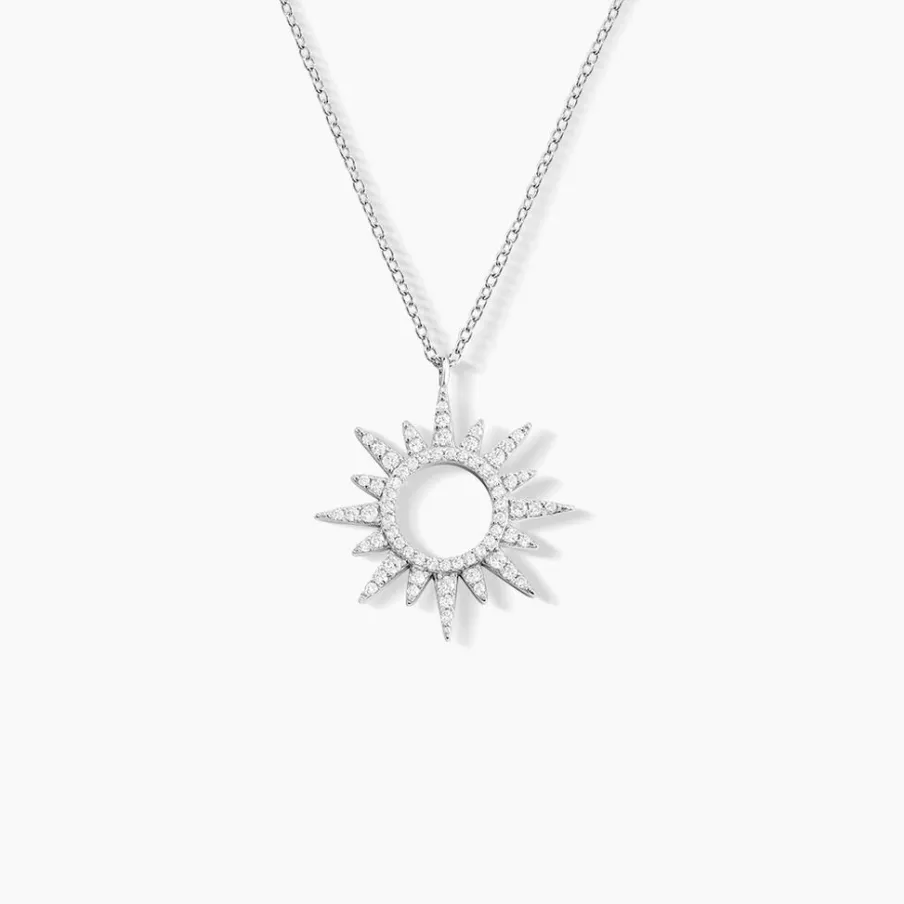Collier Argent Blanc 925/1000 Soleil Ajoure Pavage Oxydes De Zirconium 45cm