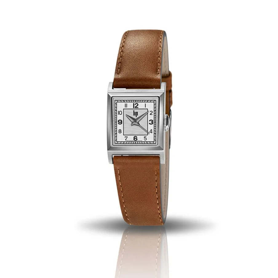 Montre Lip Churchill C18 Acier Argenté Carré Quartz 21mm Fond Argenté Bracelet Cuir Marron 671620
