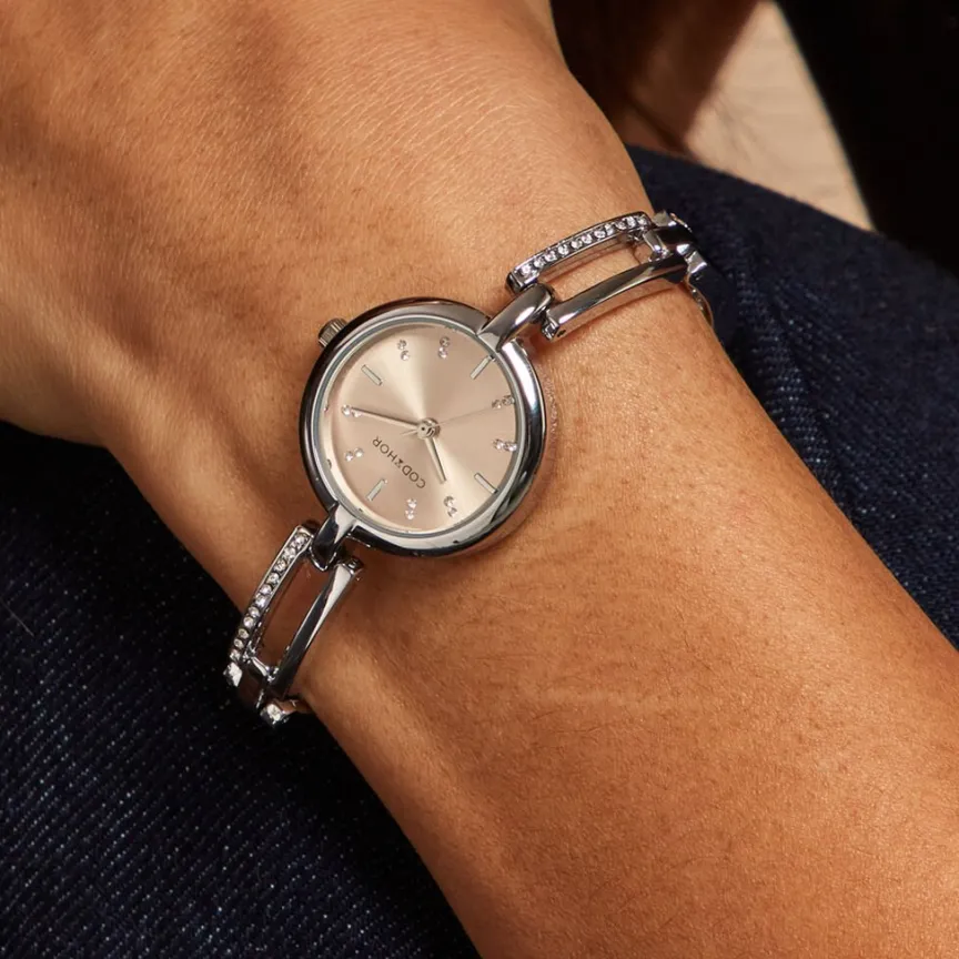 Montre Codhor Andrea Alliage Argenté Ronde Quartz 26mm Fond Rose Bracelet Alliage Argenté Et Strass Wba0110-004