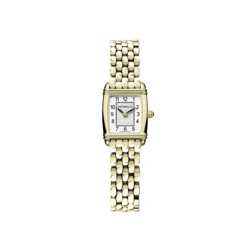 Montre Herbelin Art Deco Acier Inoxydable Doré Quartz Rectangulaire 17,8X19,4Mm Fond Argenté Bracelet Acier Inoxydable Doré 17438Bp1N22