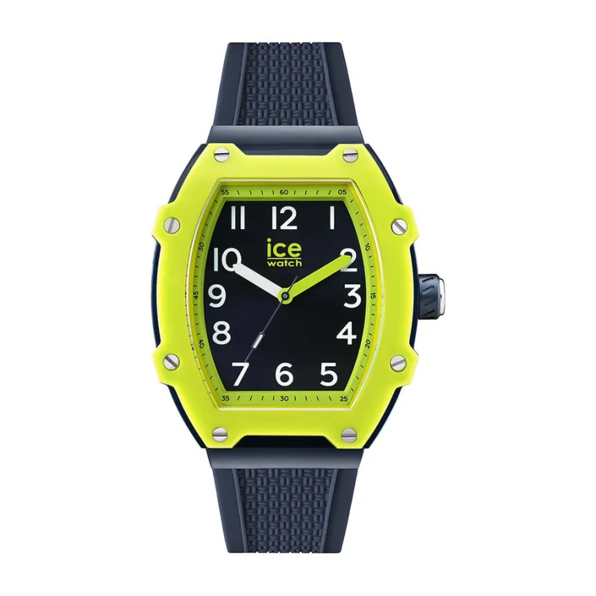 Montre Ice Watch Boliday Plastique Bleu Profond Tonneau Quartz 35mm Fond Bleu Profond Lunette Jaune Bracelet Silicone Bleu Profond 023324