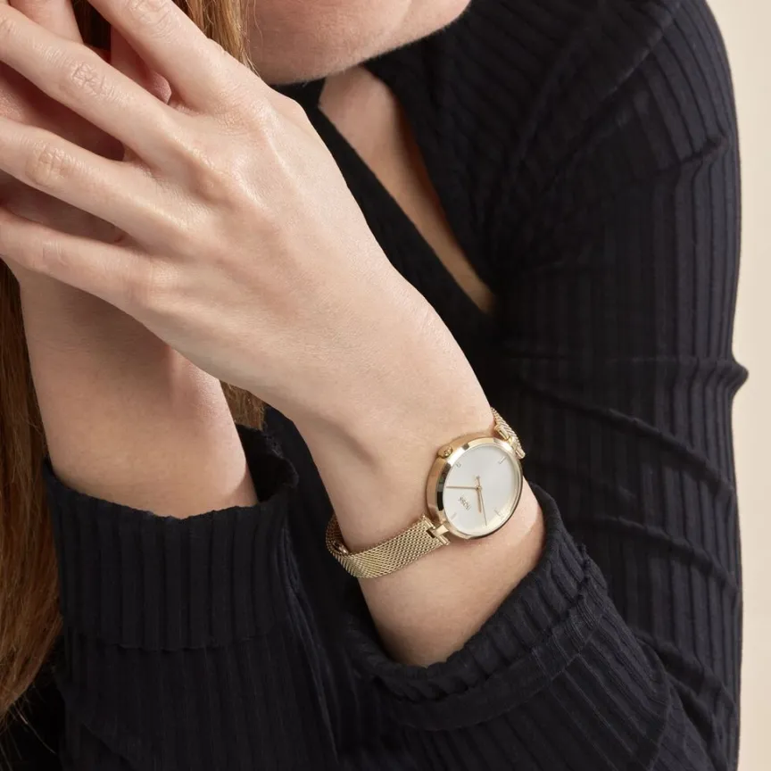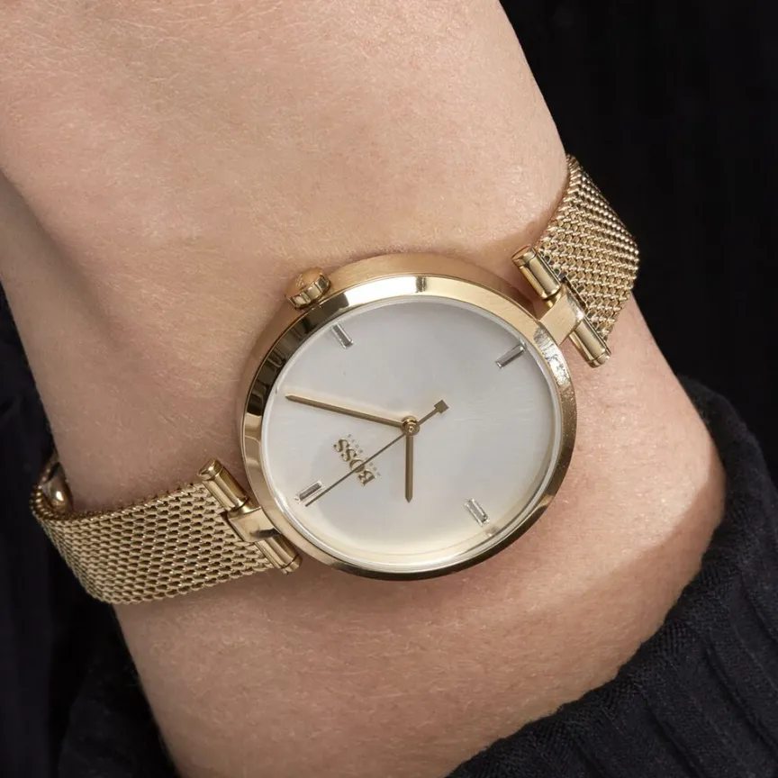 Montre Boss Majesty Acier Doré Ronde Quartz 32mm Fond Argenté Bracelet Acier Doré 1502586
