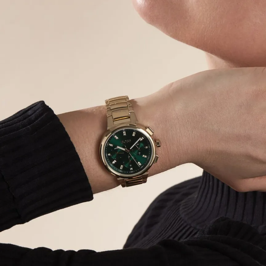 Montre Boss One Acier Doré Ronde Quartz 38mm Fond Vert Bracelet Acier Doré 1502679