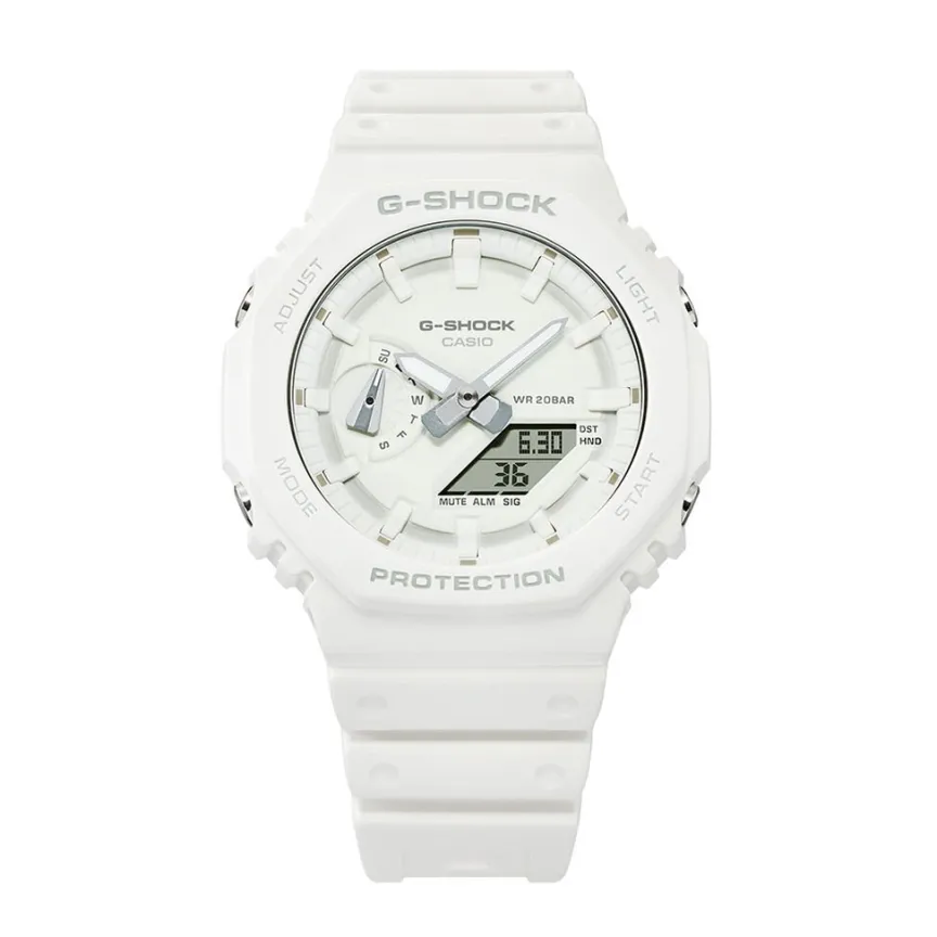 Montre Casio G-shock Classic Résine Blanc Ronde Anadigitale 45.4mm Fond Blanc Bracelet Résine Blanc Ga-2100-7a7er