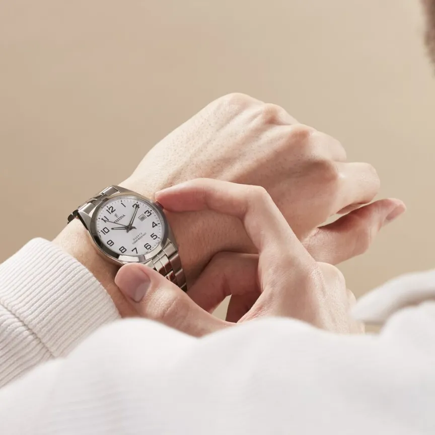 Montre Festina Classics Acier Argenté Ronde Quartz 40mm Fond Blanc Bracelet Acier Argenté F20437/1