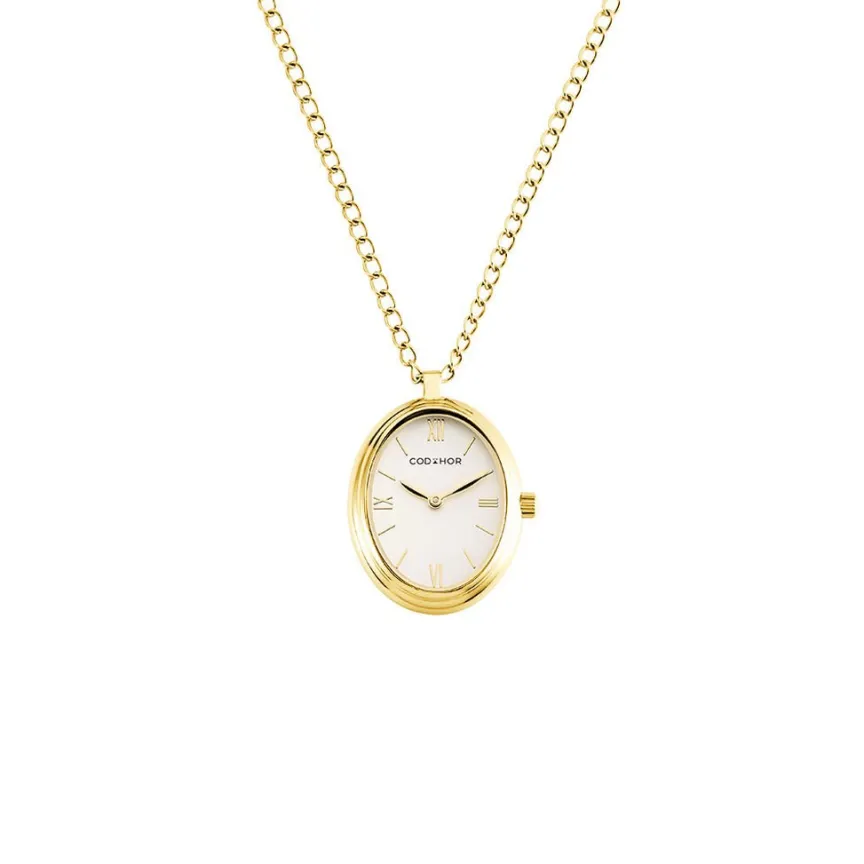 Montre Codhor Collier Astra Alliage Dore Ovale Quartz 23mm Fond Blanc Chaine Acier Dore Ch.5256s/01m
