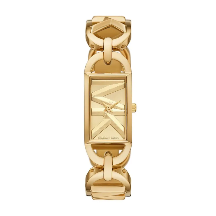Montre Michael Kors Empire Acier Dore Rectangulaire Quartz 30mm Fond Dore Bracelet Acier Dore Mk7406