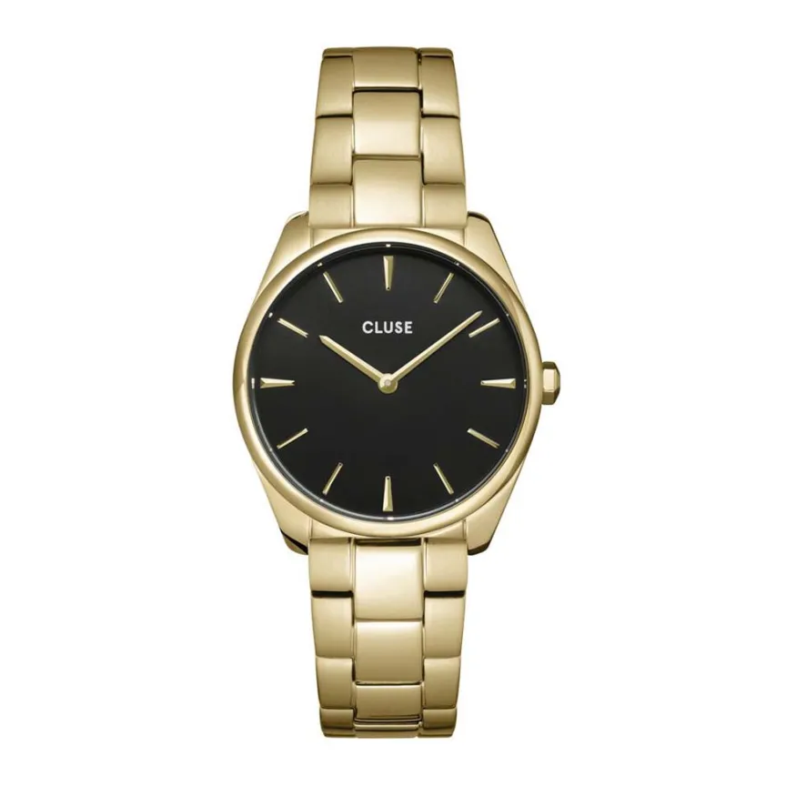 Montre Cluse Feroce Petite Acier Doré Ronde Quartz 31.5mm Fond Noir Bracelet Acier Doré Cw11208