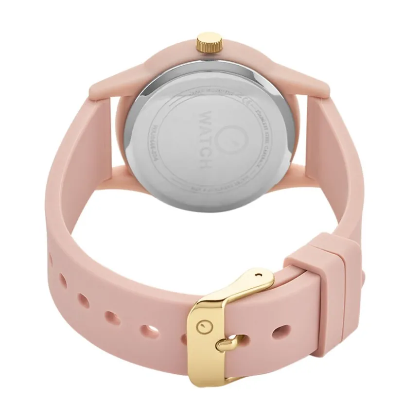 Montre O Watch Flex Plastique Rose Ronde Quartz 33mm Fond Rose Bracelet Silicone Rose Wai0446-034