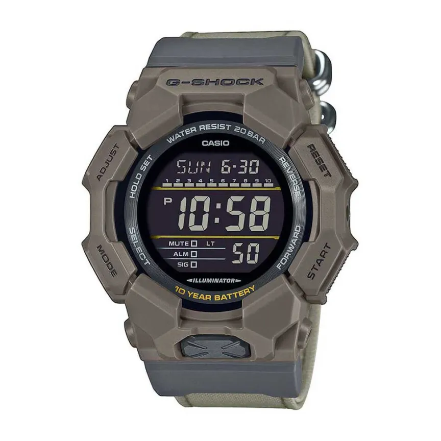 Montre Casio G-Shock Résine Marron Quartz Digital Multifonction Ronde 51,9Mm Fond Noir Bracelet Tissu Marron Gd-010Ce-5Er