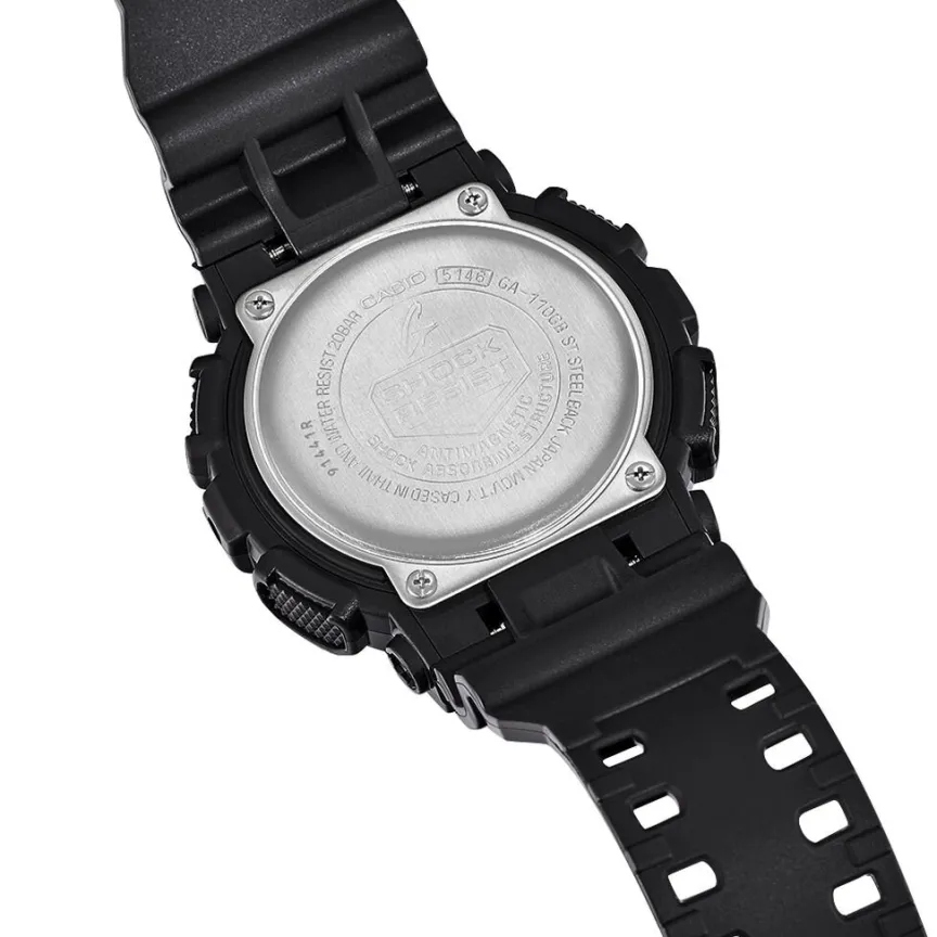 Montre Casio G-shock Gold Resine Noire Ronde Quartz Chronographe 51mm Fond Noir Et Index Doré Bracelet Resine Noire Ga-110gb-1aer