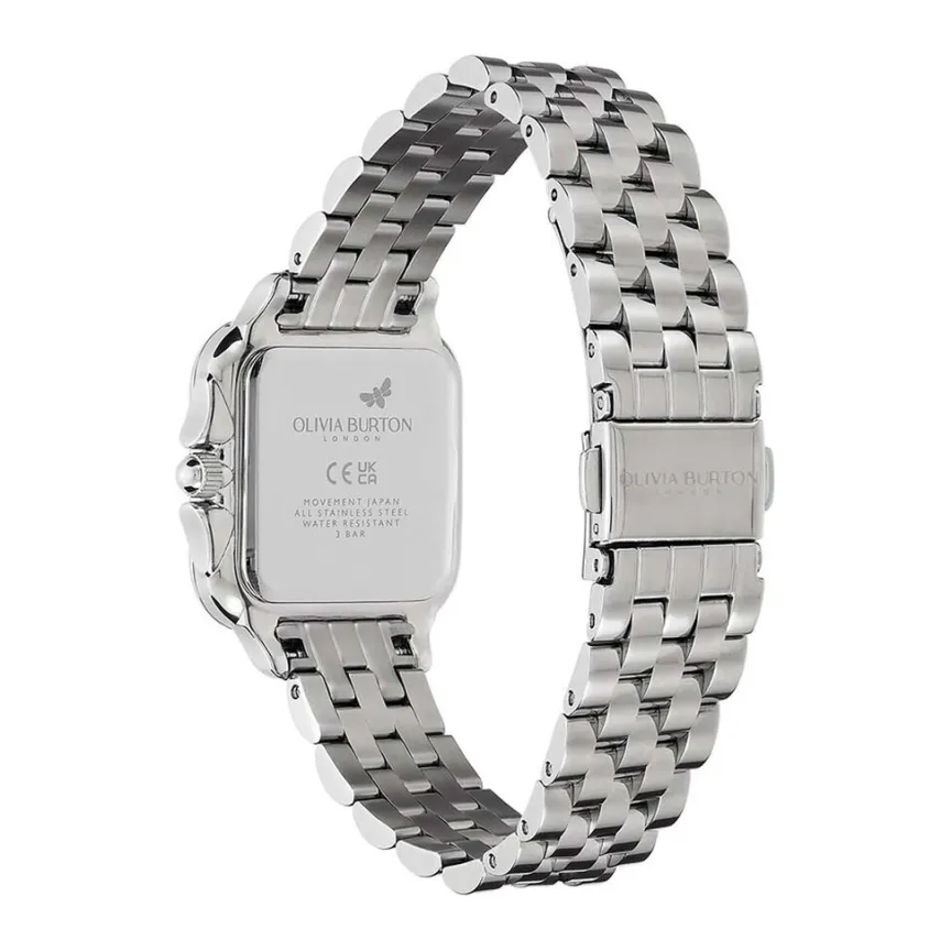 Montre Olivia Burton Grosvenor Acier Blanc Carrée Quartz 28mm Fond Bleu Entourage Strass Bracelet Acier Blanc 24000083