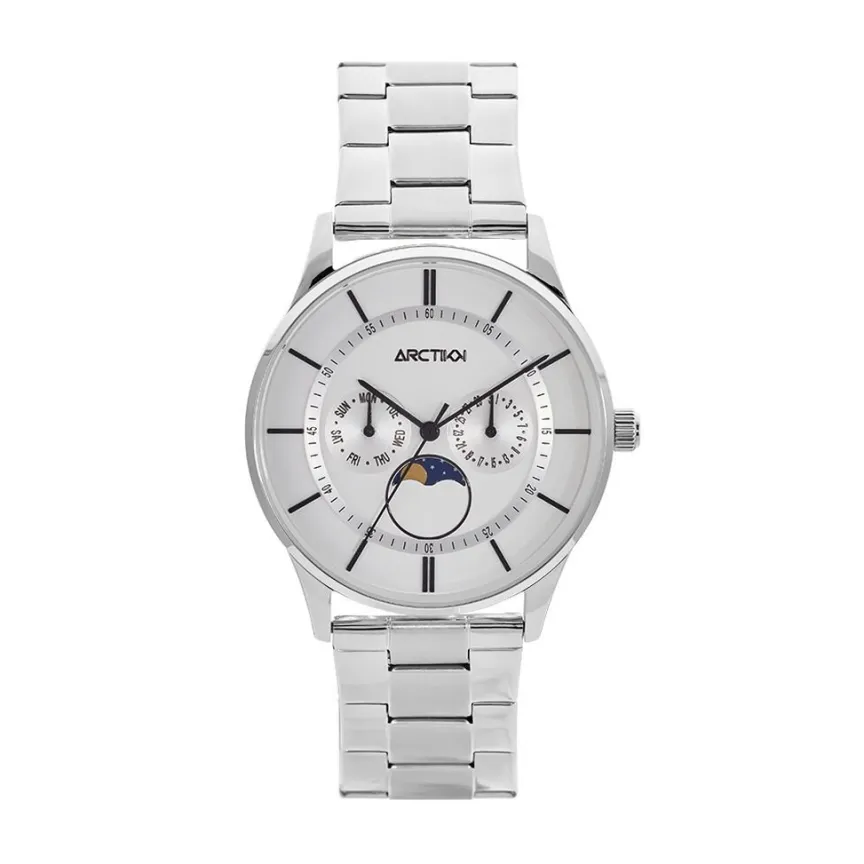 Montre Artick Horizon Acier Argente Ronde Quartz Multifonctions 42mm Fond Argente Bracelet Acier Argente P100989-s