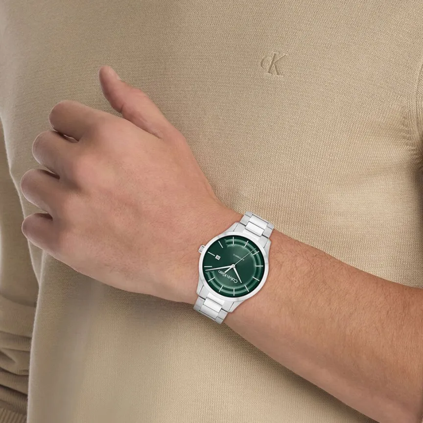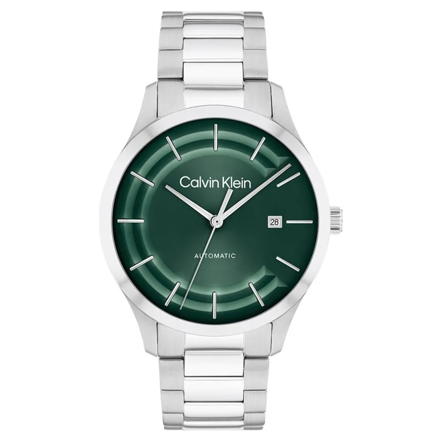 Montre Calvin Klein Iconic Automatic Acier Argenté Ronde Automatique 40mm Fond Vert Bracelet Acier Argenté 25300022