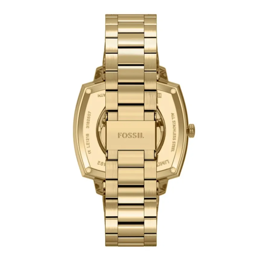 Montre Fossil Edition Limitee Nick Jonas Machine Luxe Acier Inoxydable Doré Automatique Carre 40Mm Fond Noir Coeur Ouvert Bracelet Acier Inoxydable Doré Le1218