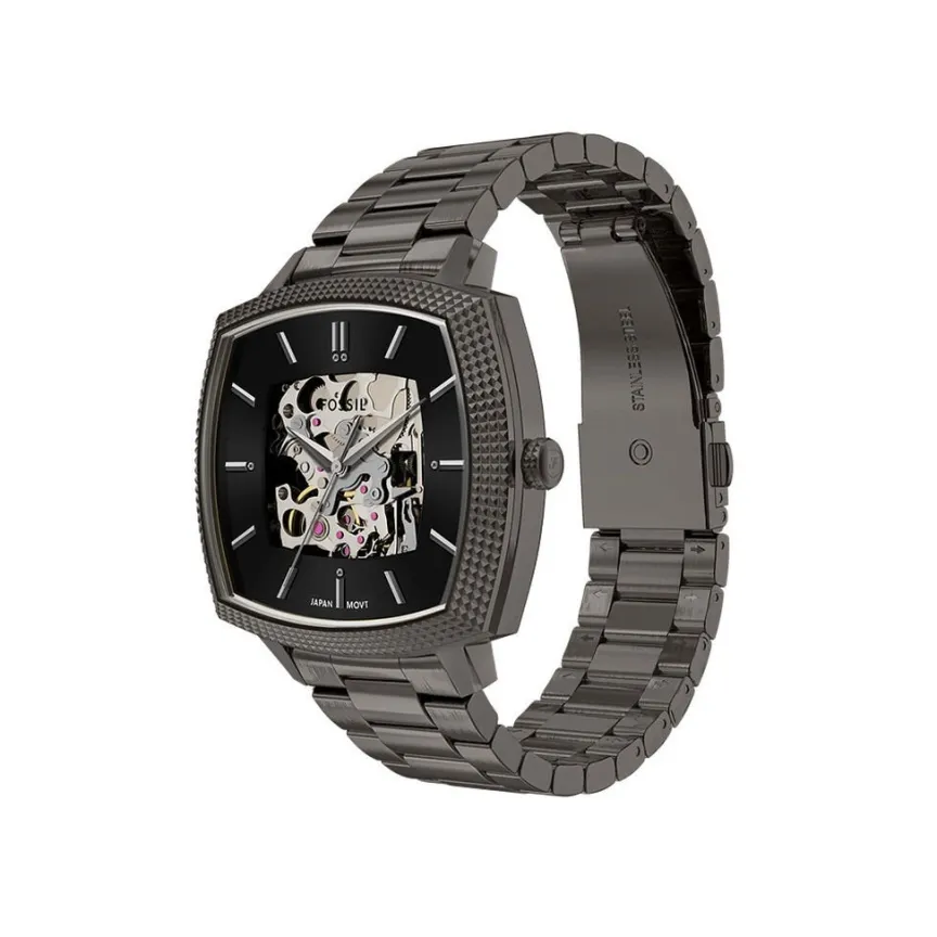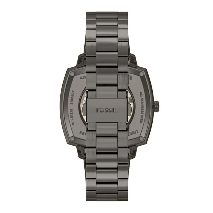 Montre Fossil Edition Limitee Nick Jonas Machine Luxe Acier Inoxydable Gris Automatique Carre 40Mm Fond Noir Coeur Ouvert Bracelet Acier Inoxydable Gris Le1219