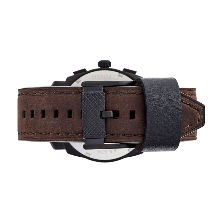 Montre Fossil Machine Acier Noir Ronde Quartz Chronographe 42mm Fond Marron Bracelet Cuir Marron Fs4656