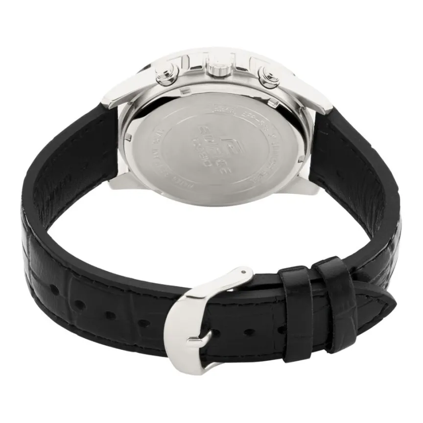 Montre Casio Edifice Acier Blanc Ronde Quartz Chronographe 48.5mm Fond Noir Bracelet Cuir Noir Efr-526l-1avuef