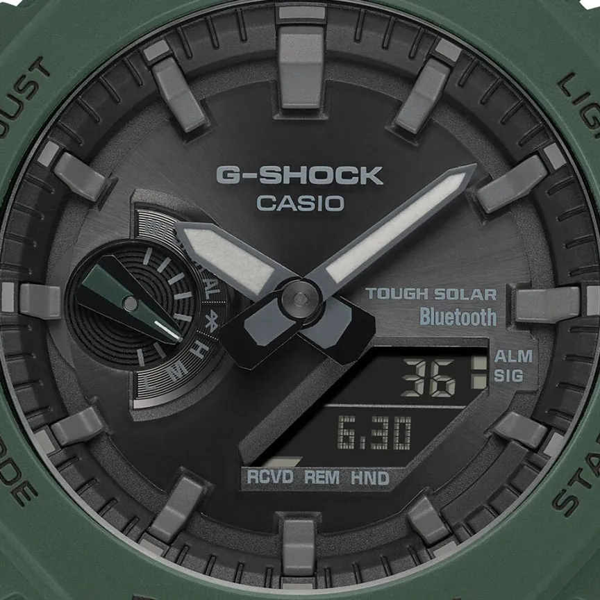 Montre Casio G-shock Résine Vert Ronde Quartz Solaire Anadigital 45.5mm Fond Noir Bracelet Résine Vert Ga-b2100-3aer
