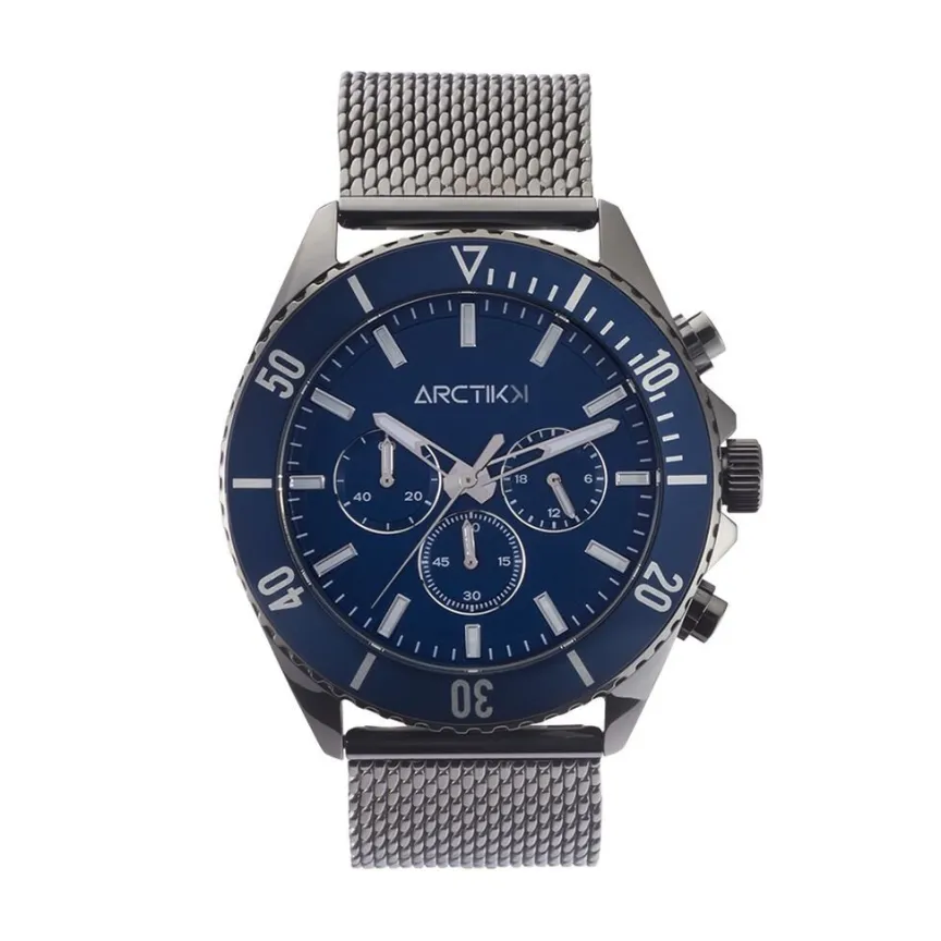 Montre Arctik Oxcal Acier Gris Ronde Quartz Chronographe 46mm Lunette Bleue Fond Bleu Bracelet Milanais Acier Gris Wba0409-002
