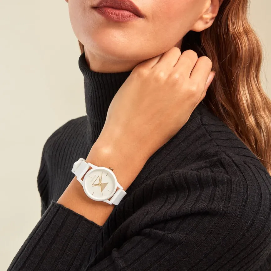 Montre Codhor Pauline Plastique Blanc Ronde Quartz 33mm Fond Blanc Sablier Bracelet Silicone Blanc Wai0446-048