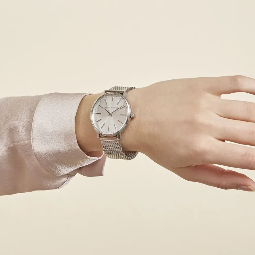 Montre Michael Kors Pyper Acier Blanc Ronde Quartz 38mm Fond Argente Bracelet Acier Blanc Mk4338