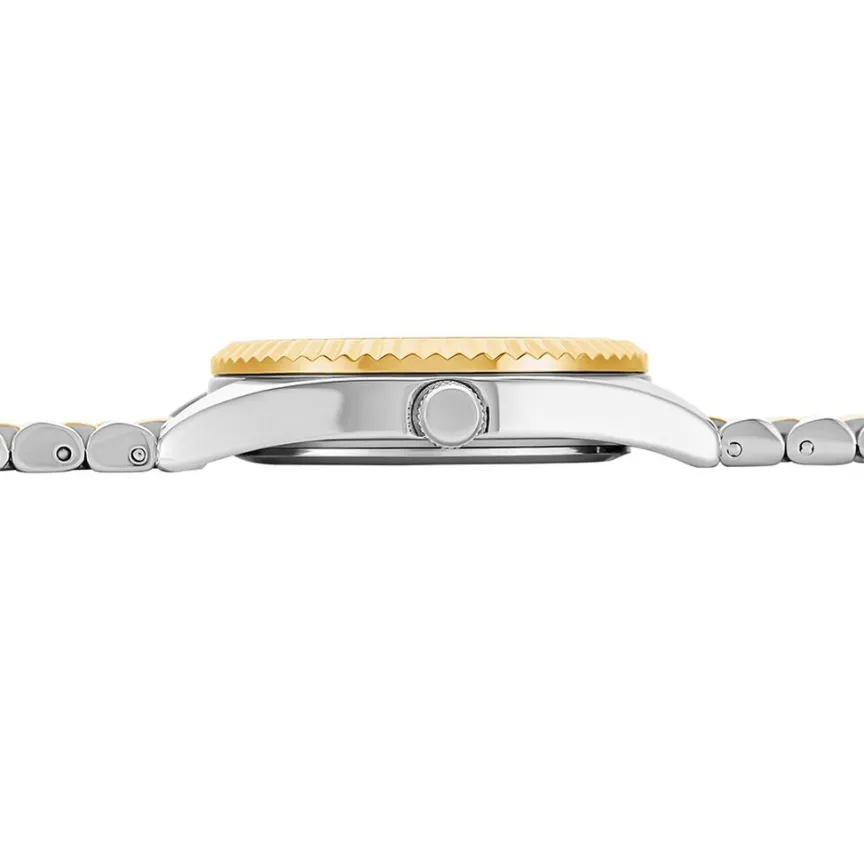 Montre Codhor Sandy Dore Ronde Quartz 32mm Lunette Crantee Fond Blanc Bracelet Alliage Bicolore Wbc0126-024